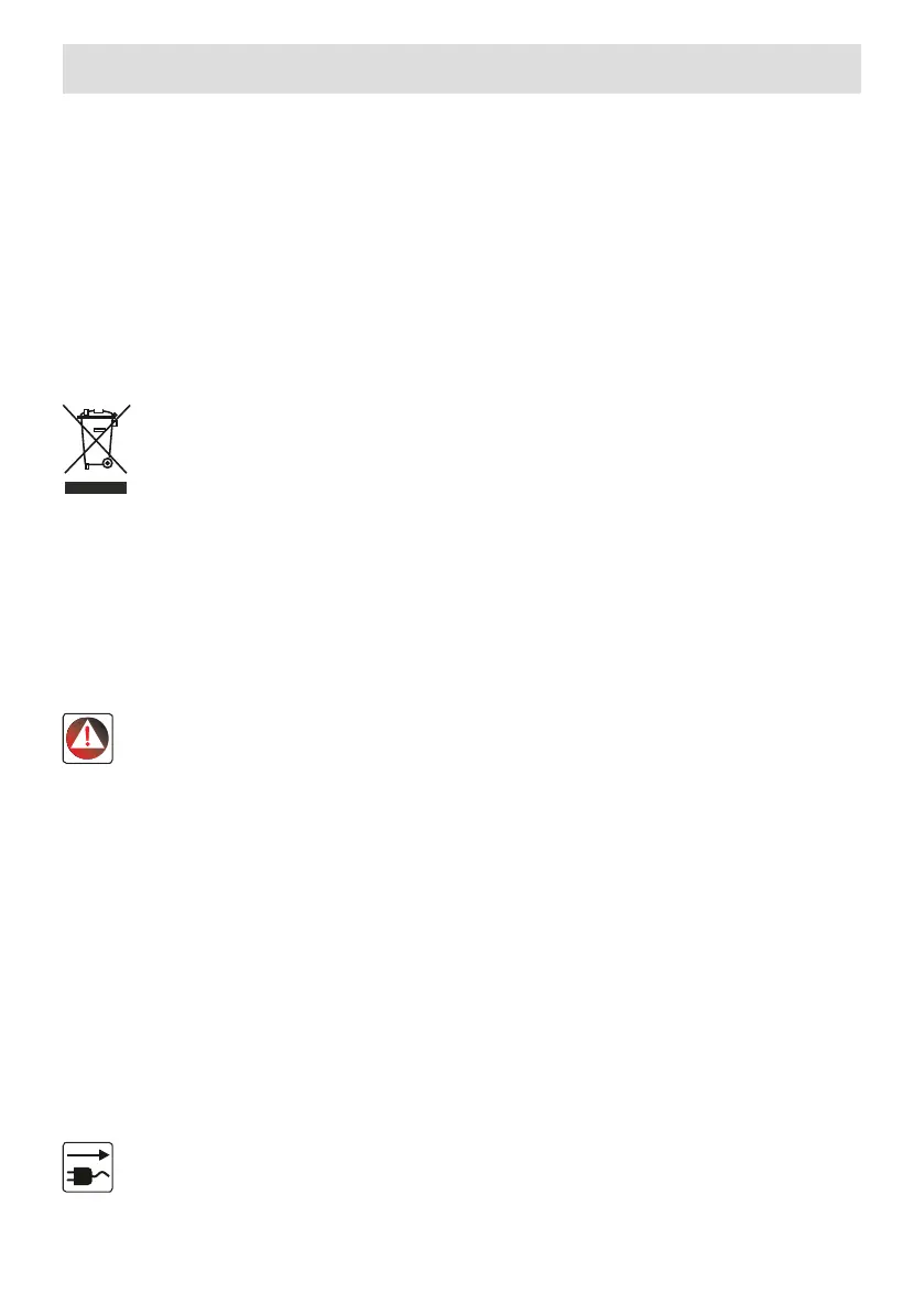 • Når apparatet skal kasseres, må den elektriske ledningen kuttes og pluggen og kabelen må ødelegges. Fjern