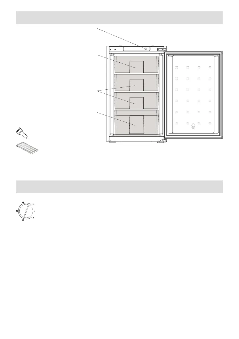Fryserom (fryser): Mest effektiv energibruk er sikret i kongurasjonen med skuffene og beholderne i standard posisjon.