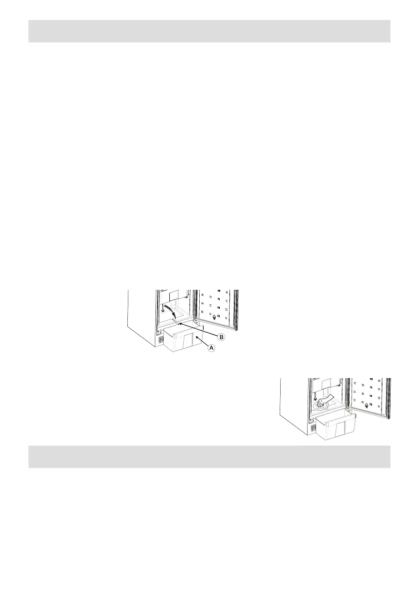 • Lämna dörren öppen för att påskynda avfrostningen. Ta bort smältvattnet från utrymmet.
