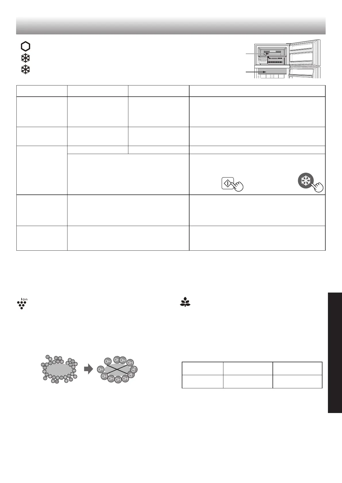 (When the temperature is set at F: -18°C, R: 3°C.)