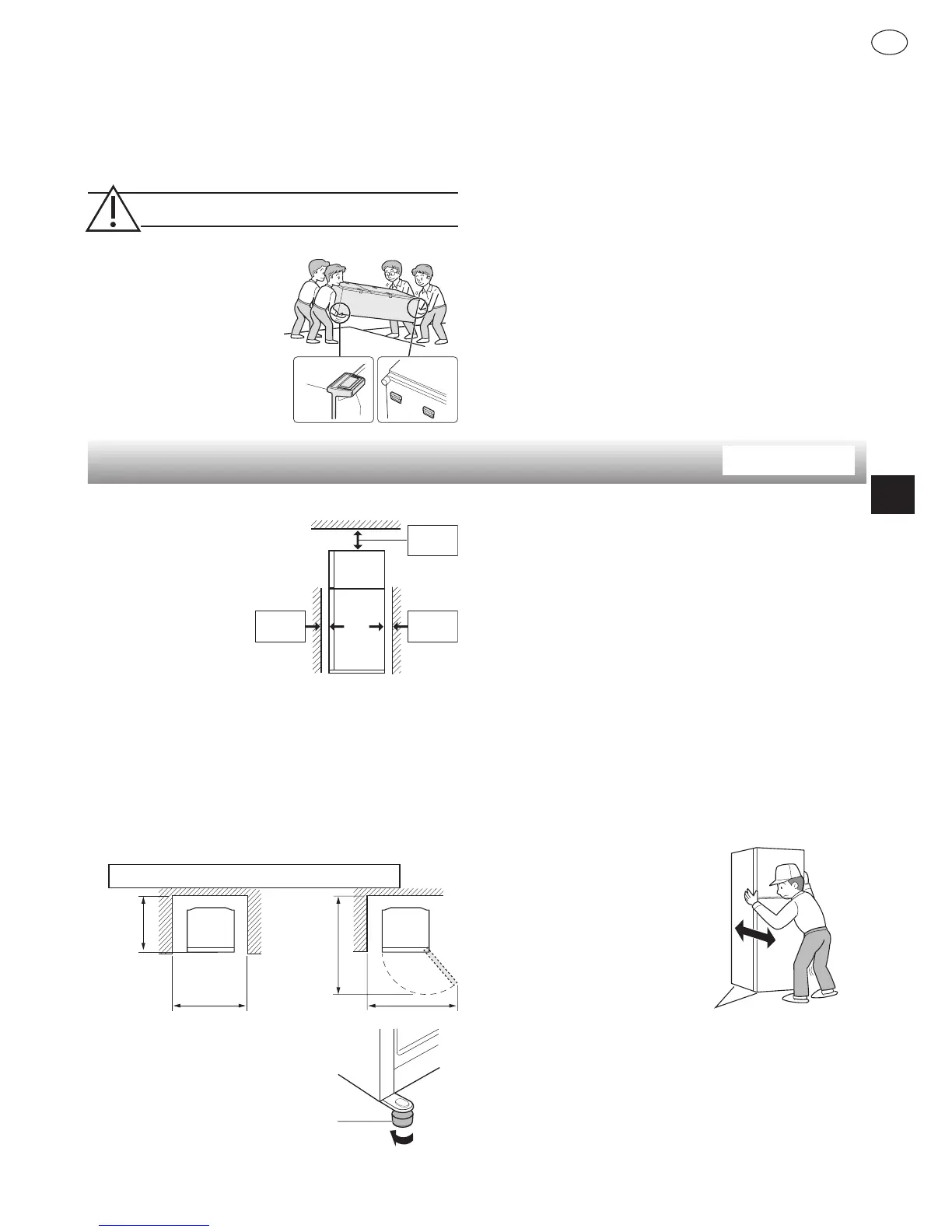 • Ha a hűtőszekrényt a lenti képen jelöltnél kisebb