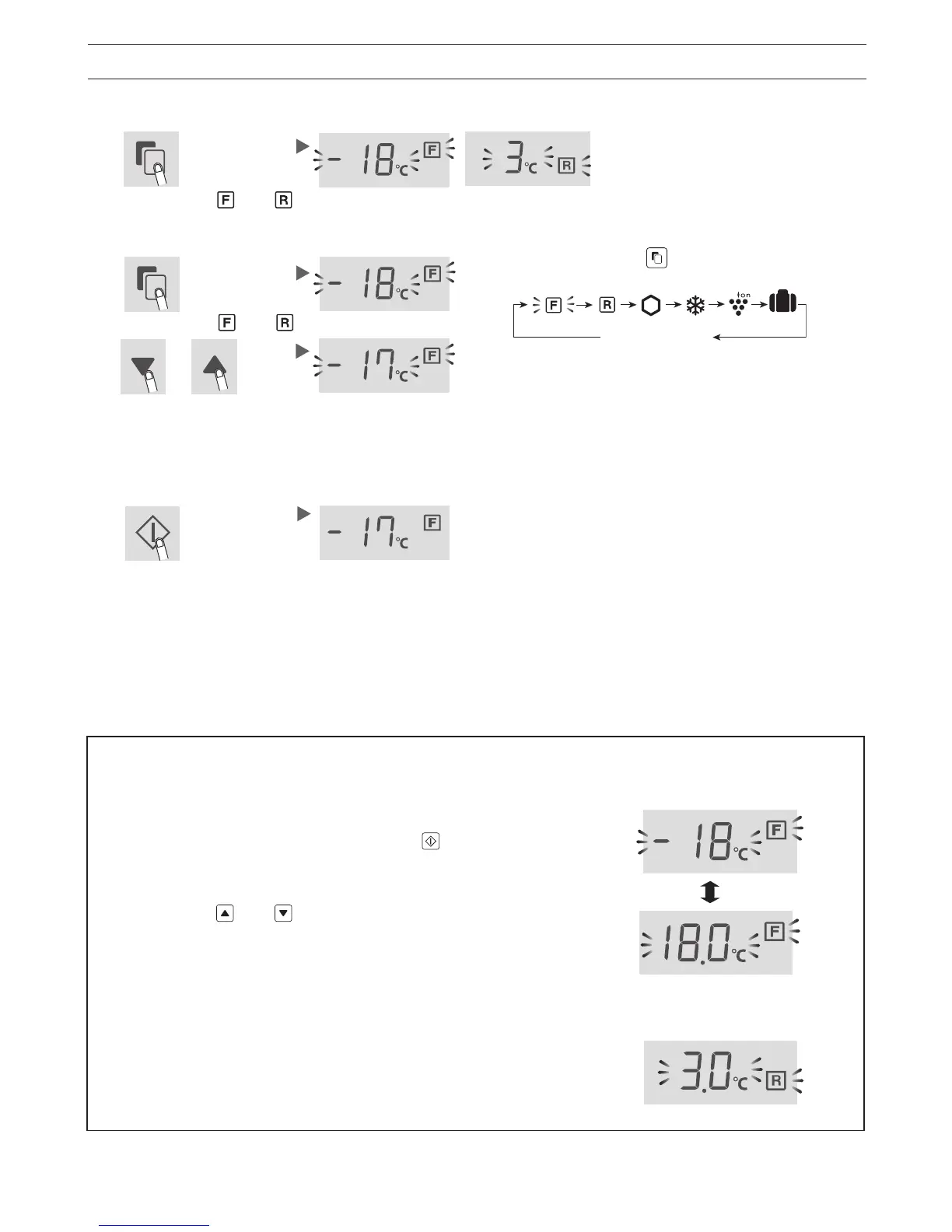 : Teplota je nastavitelná v rozmezí od -13°C do -21°C v krocích po 1 °C.