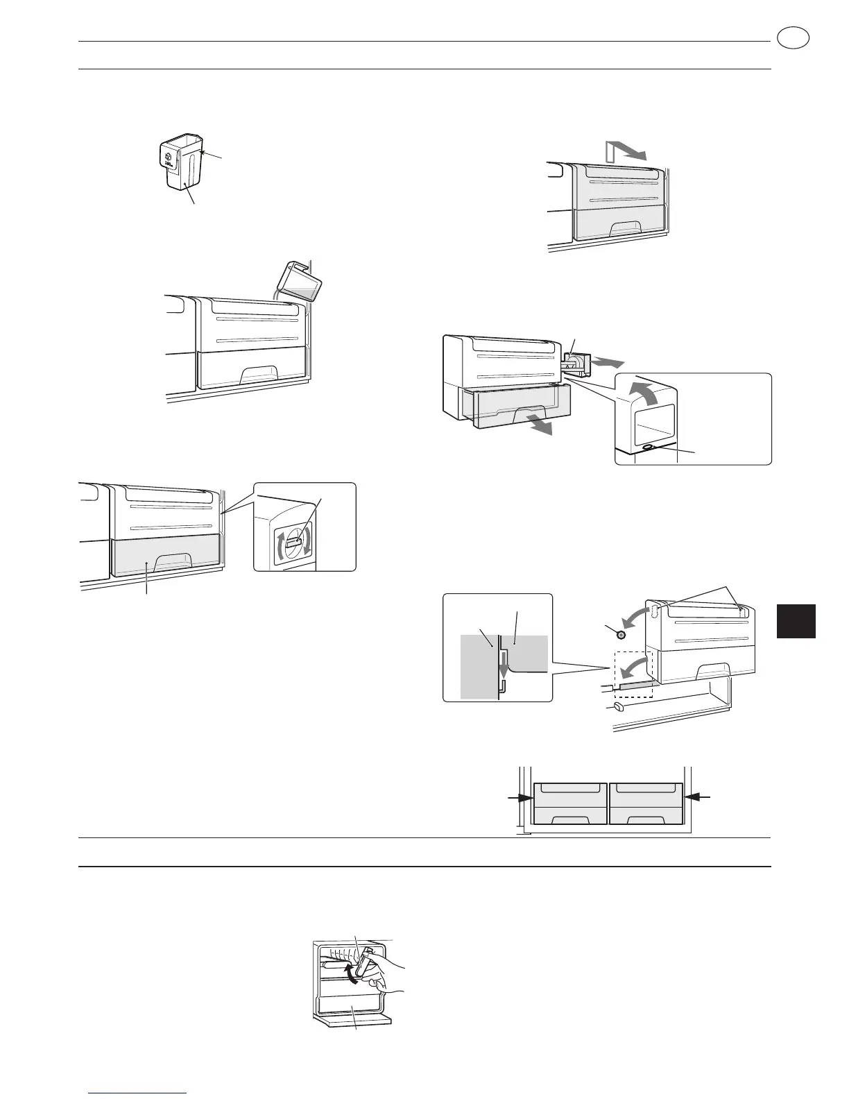 2) Ištraukite ledo kubelių stalčių.