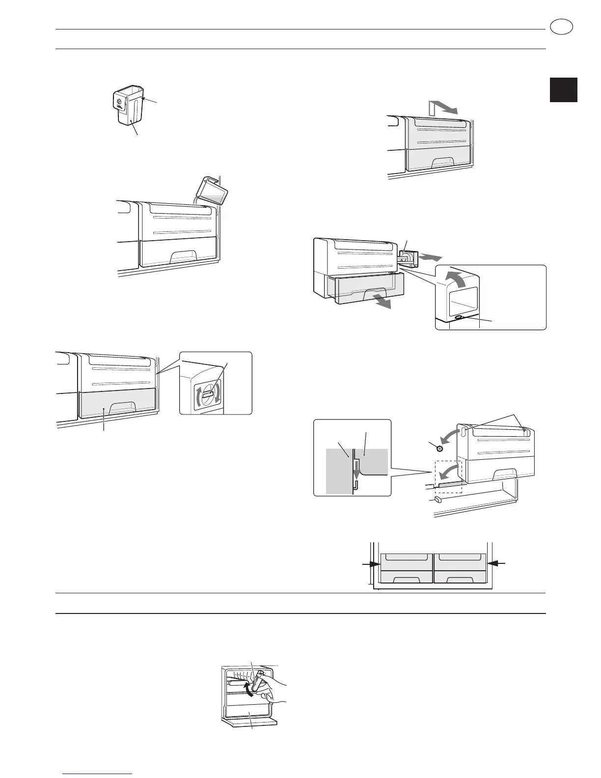 1) Instale de nuevo el dispensador de cubitos hielos interior