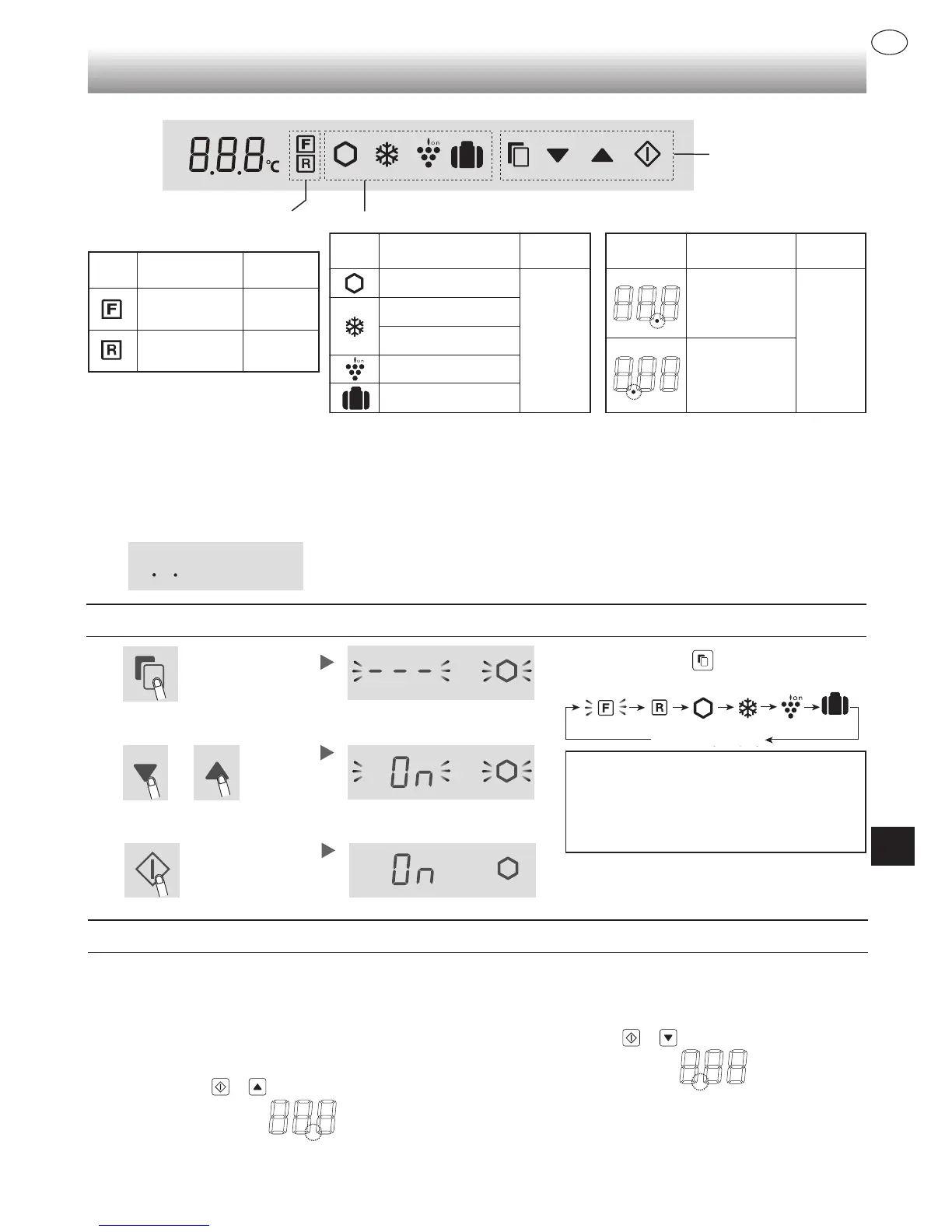 • Ikone ali indikatorji načinov delovanja se osvetlijo na