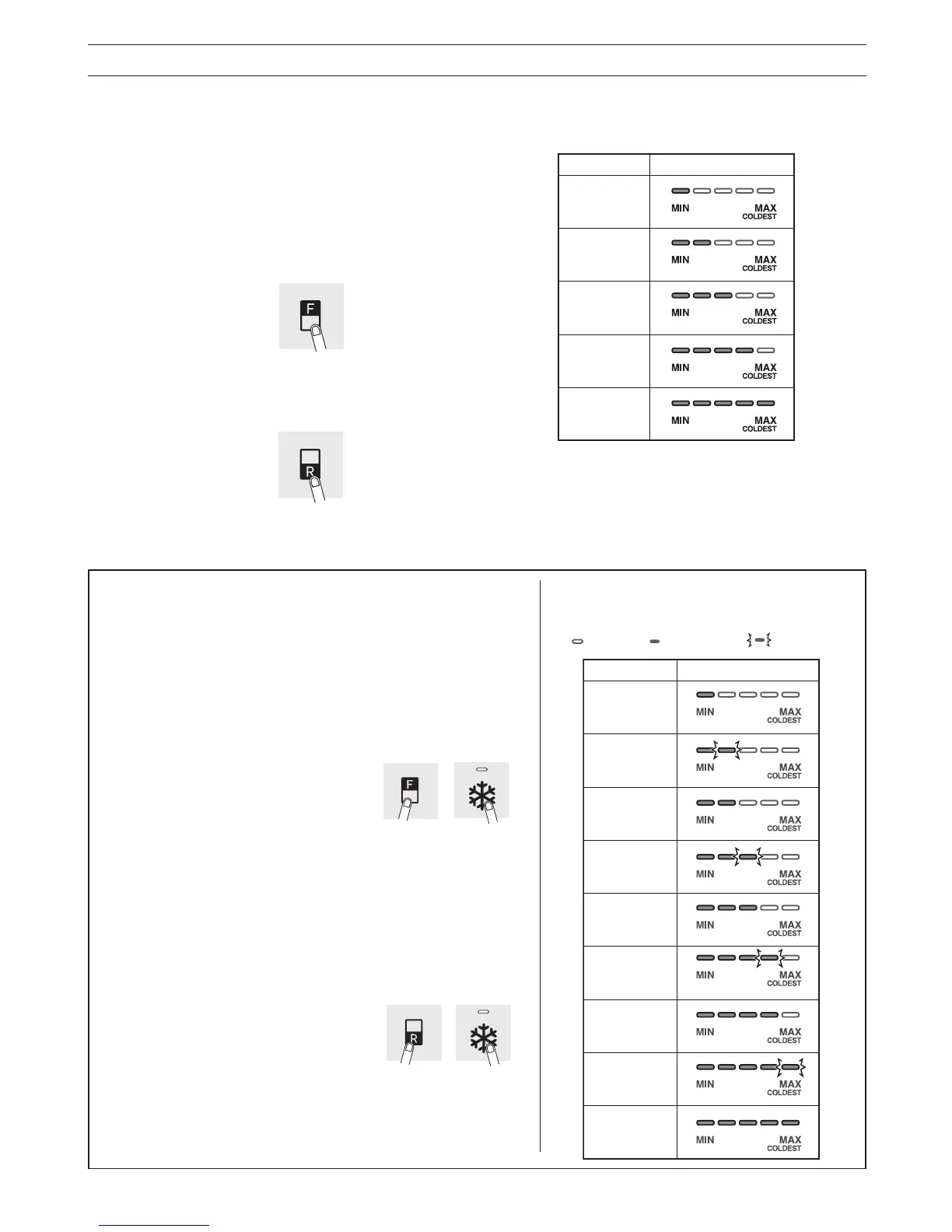 Compartimento do frigoríco : Carregue no botão “R”.