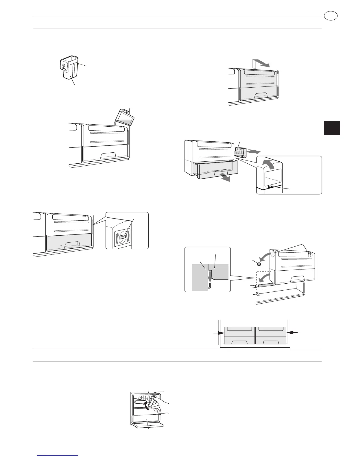 1) Zusammenbau der Eiswürfelmaschine in der Tür.
