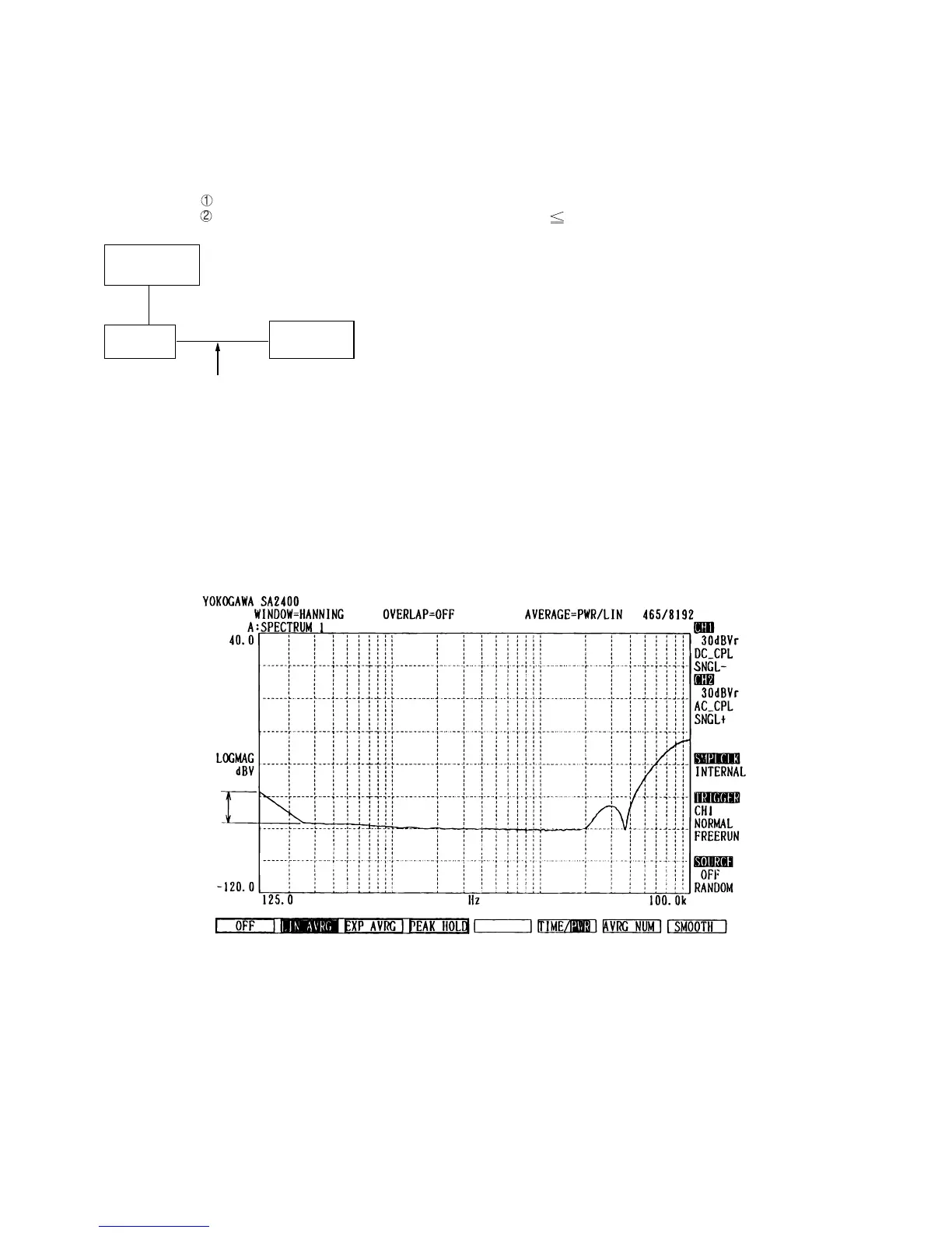 Measure the noise distribution between the set output terminals (Lch+, Lch- and Rch+, Rch-), and adjust VRA1 to VRA4. The VRA