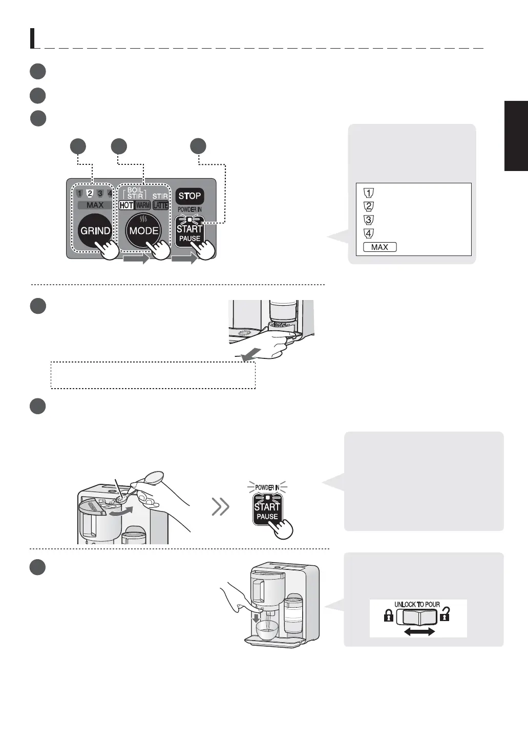 by pressing the GRIND button twice.