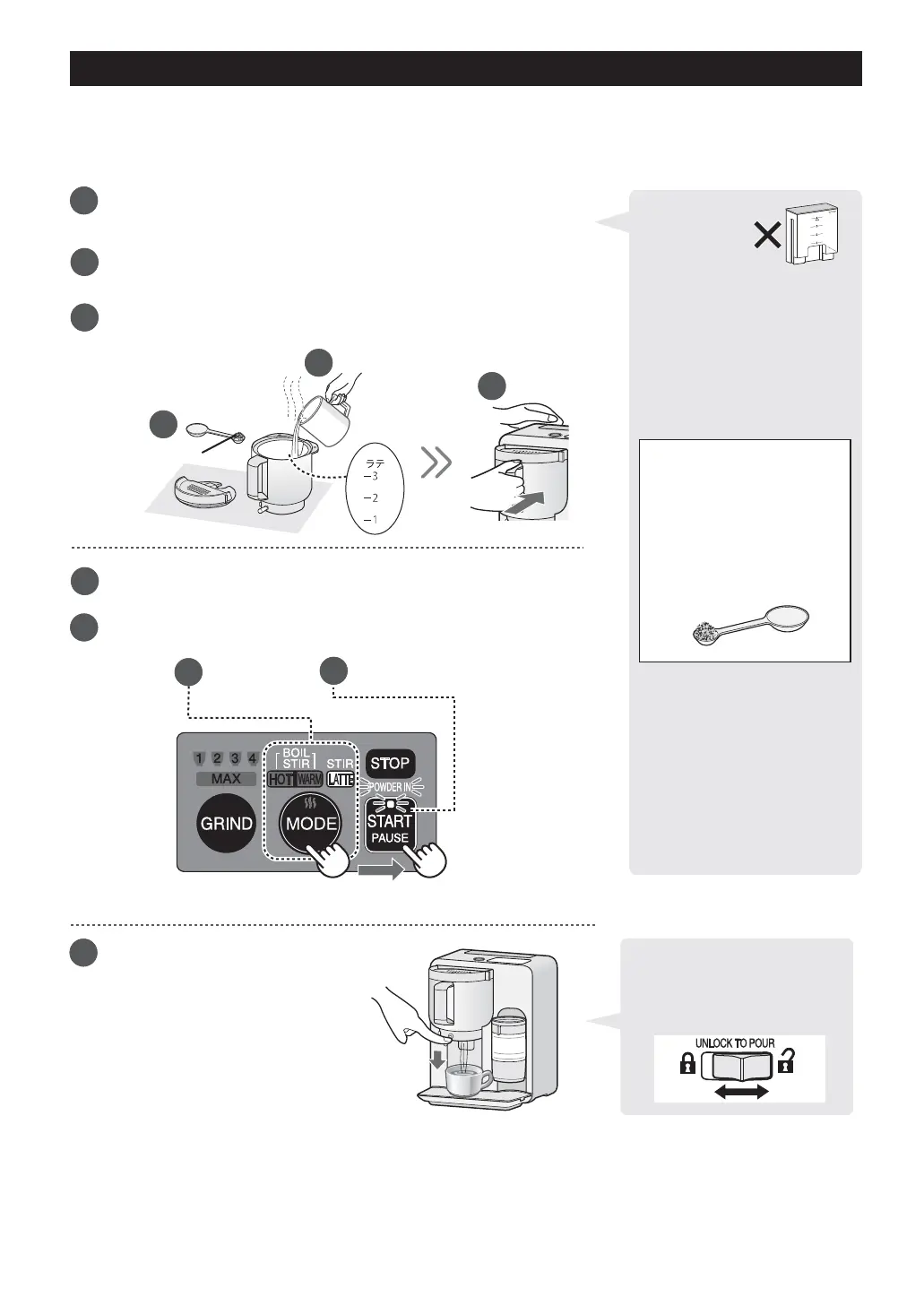 of warm milk (for 1 cup, pour to line1 of ラテ [latte])