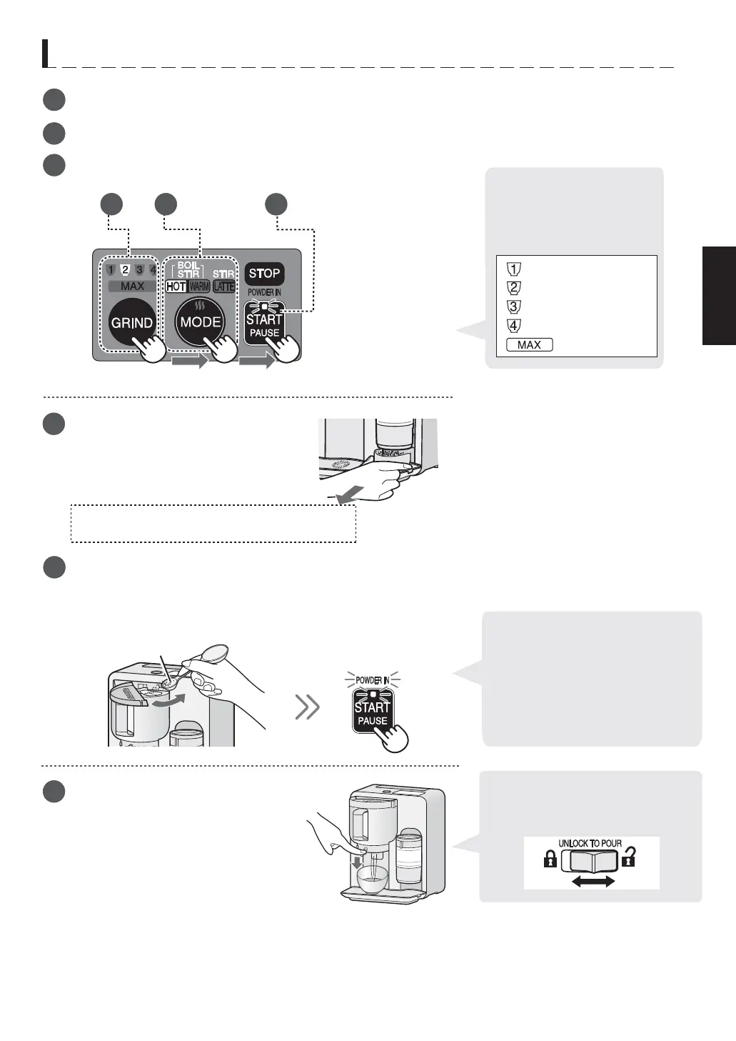 Sélectionner la quantité en appuyant deux fois sur la touche GRIND.