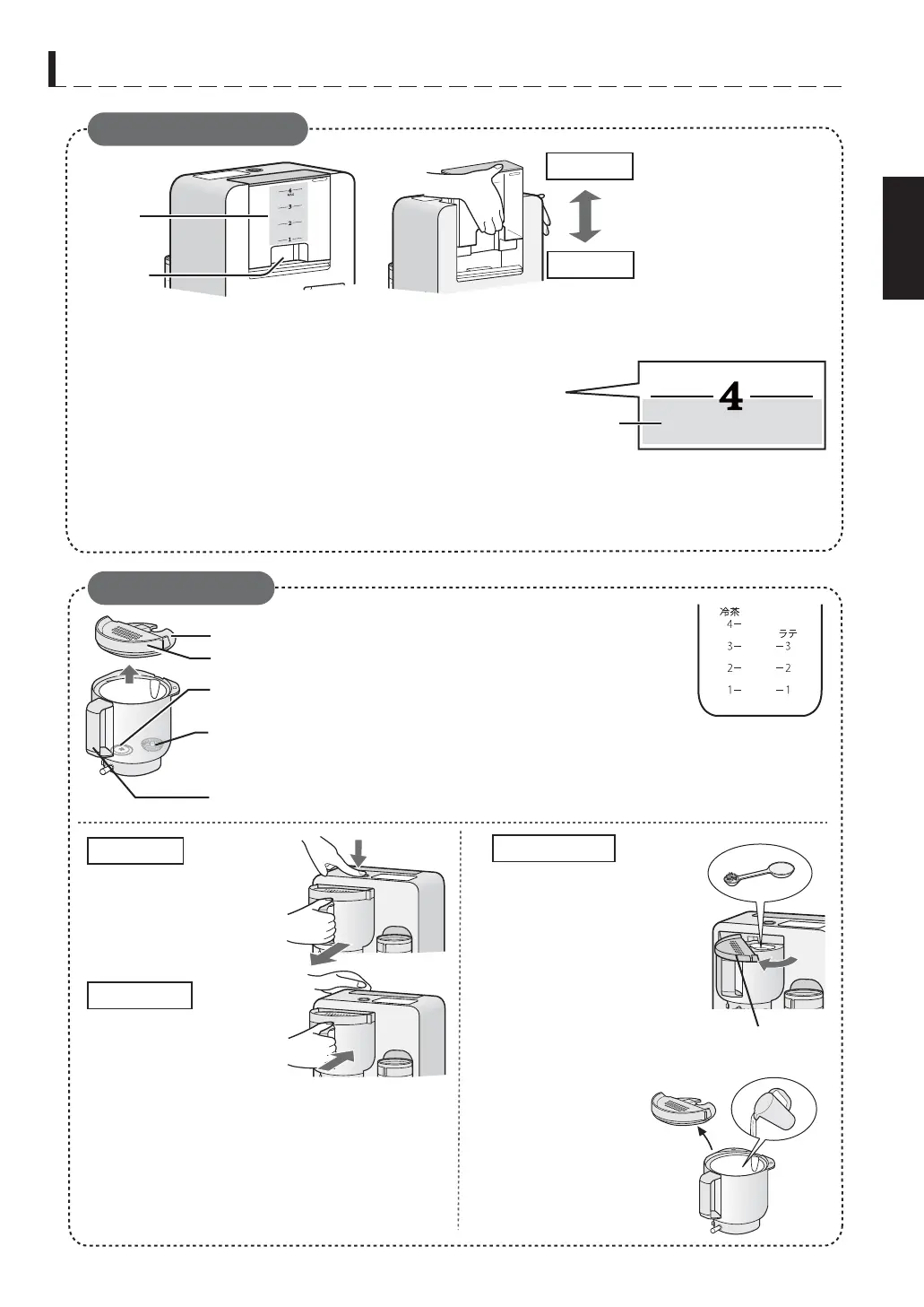 of lines, 冷茶(cold tea) and ラテ(latte)
