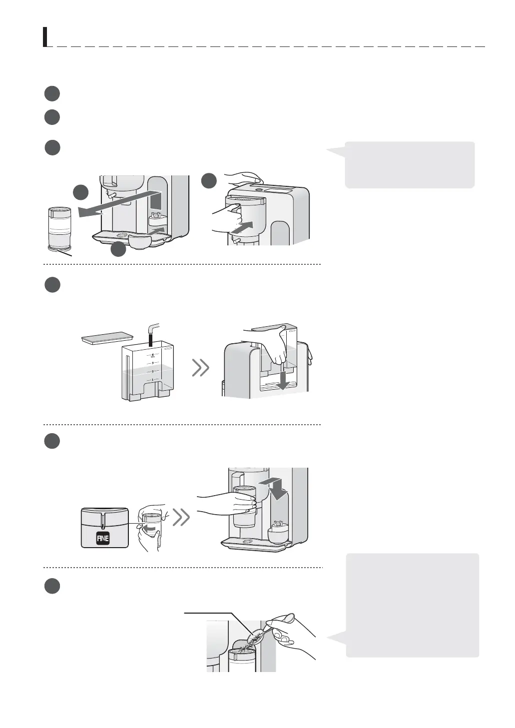 お茶容器に水位2まで水を入れ、本体にセットする。