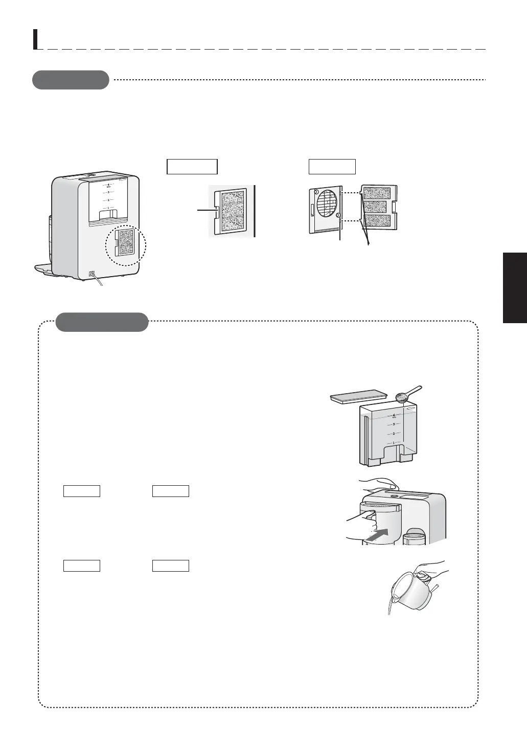1.水タンクにMAXの水位まで水を入れる。