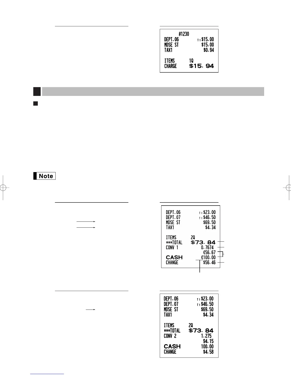 • If programmed, a foreign currency symbol is printed when you use a prest rate.