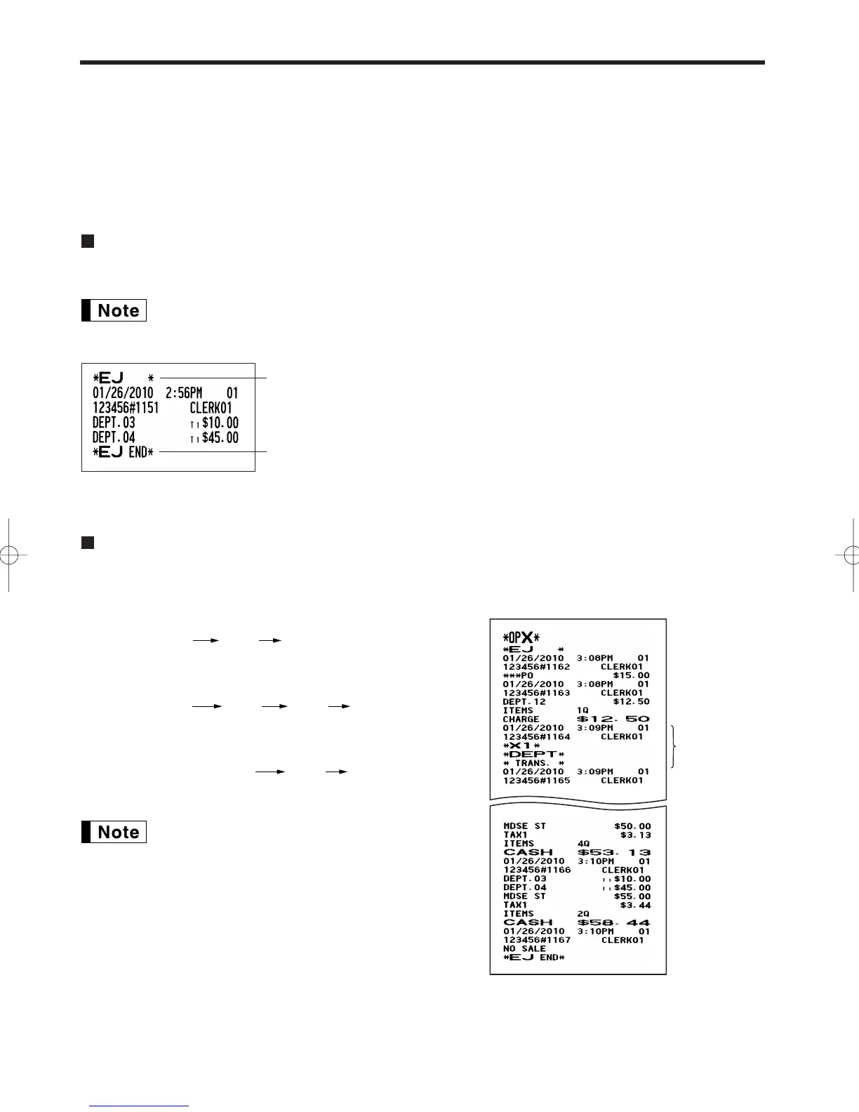 The cash register provides an electronic journal (EJ) function. This function is intended to record the journal