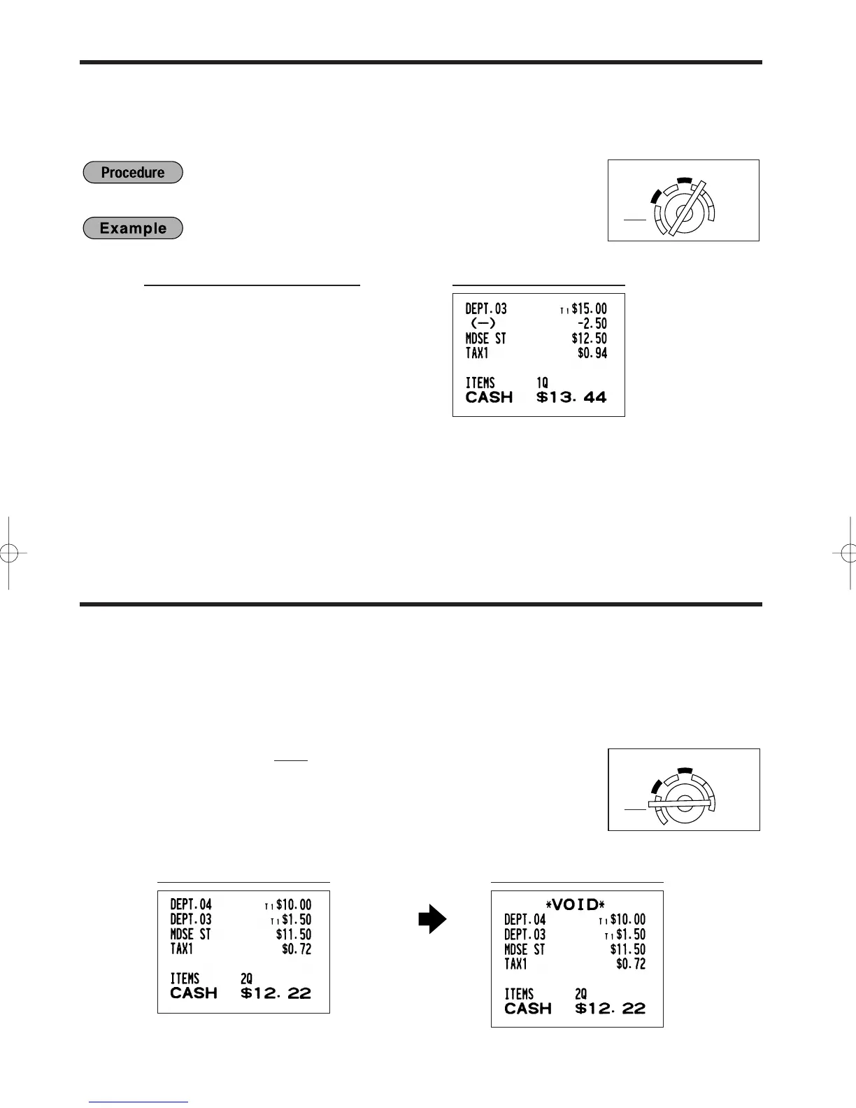 incorrect receipt is removed from register memory; the voided amounts are added