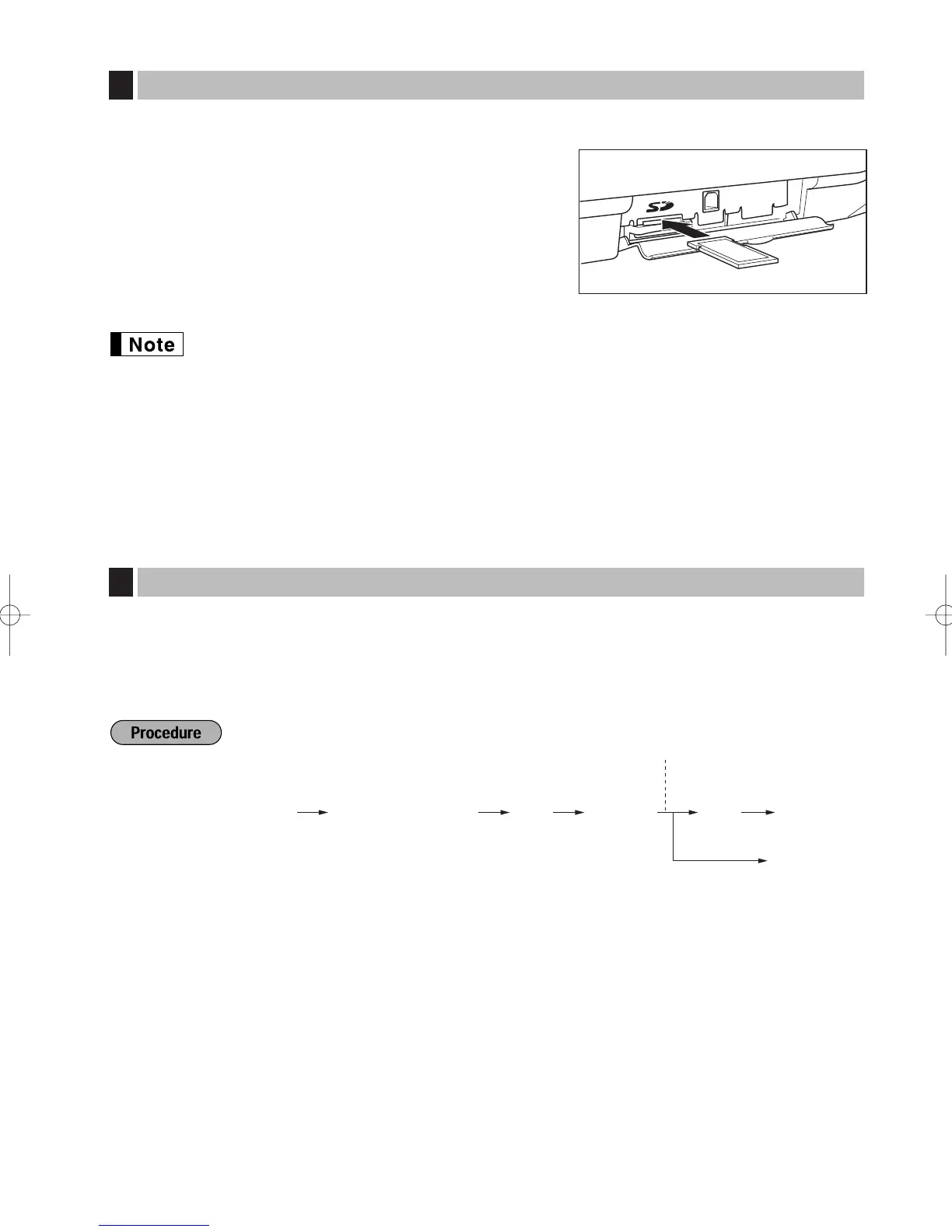 this instruction is not performed correctly, the card or SD card slot may be damaged.