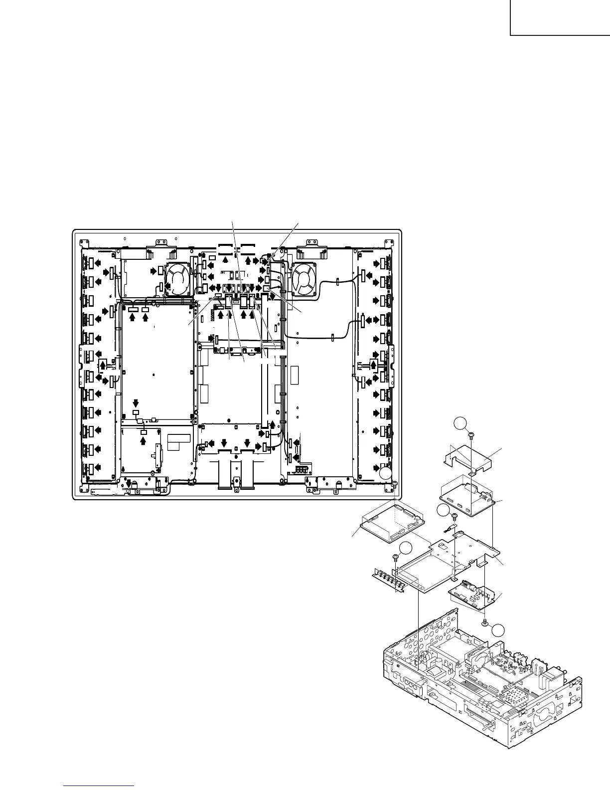 7. Remove the DC/DC Converter PWB, TMDS-TX PWB and AUDIO I/F PWB.