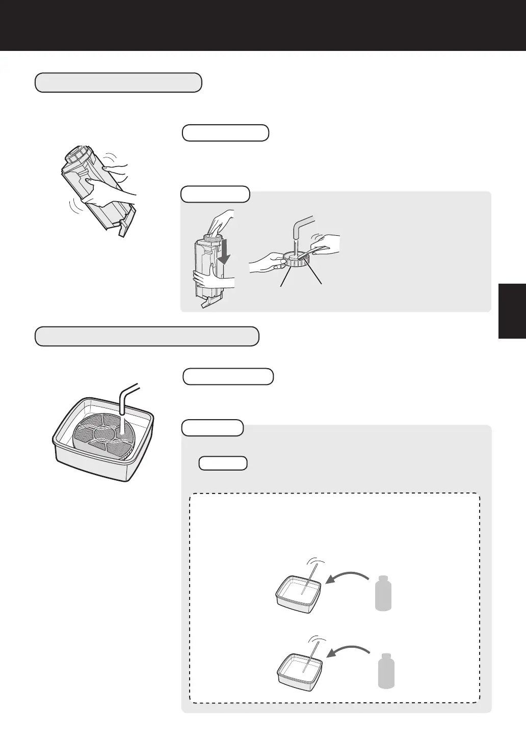 • Ne placez pas le réservoir d'eau avec le bouchon vers le bas. (De