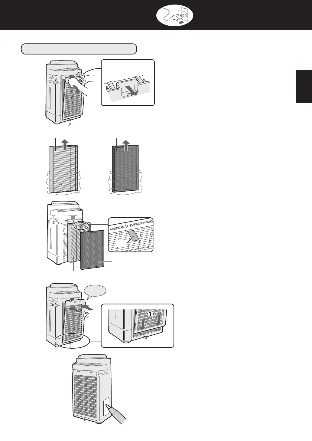 HEPA-Filter (weiß) Deofi lter (schwarz)