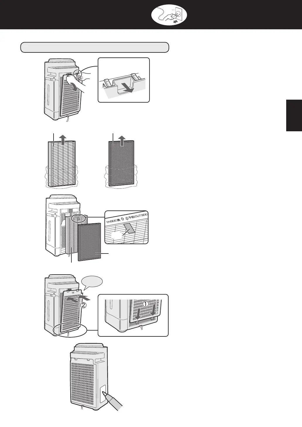 Filtro HEPA (blanco) Filtro desodorante (negro)