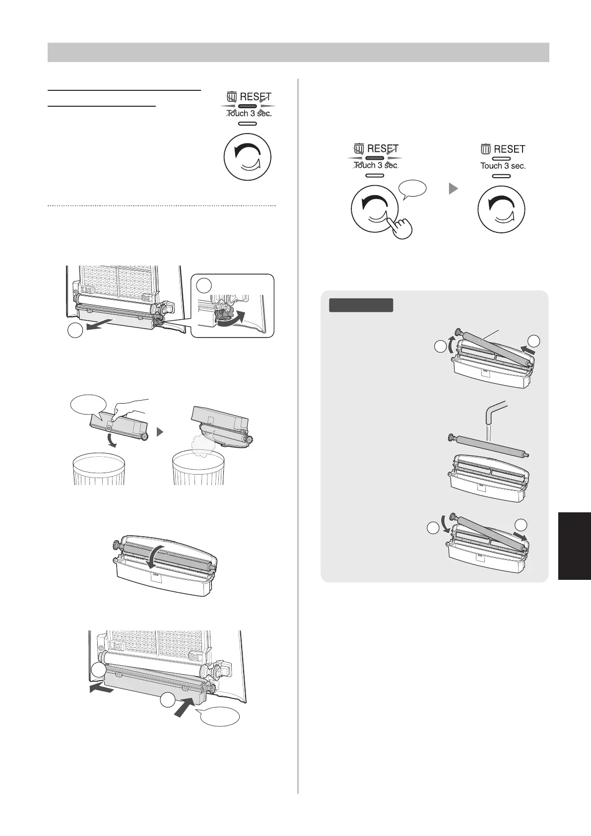 reset van de stofopvangbak gaat