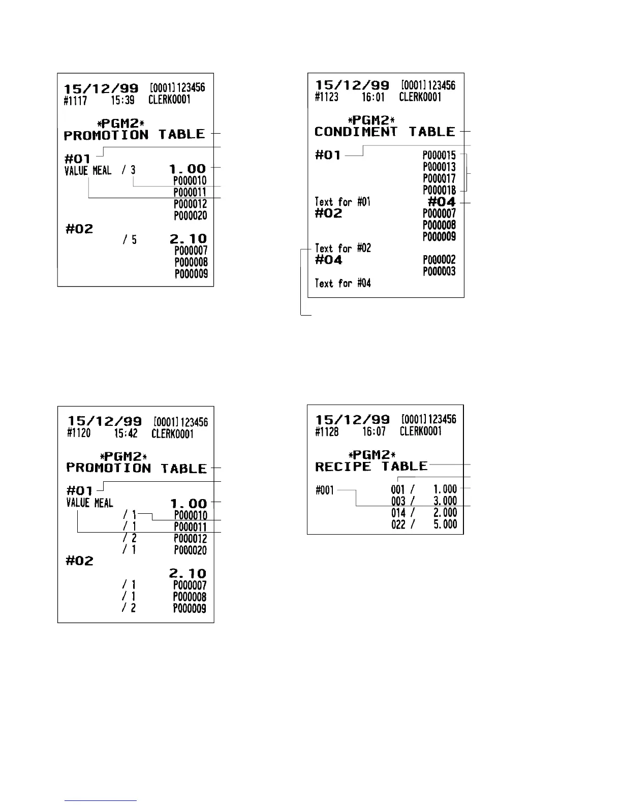 Promotion table (Normal selling) (PGM2 mode) • Condiment table (PGM2 mode)