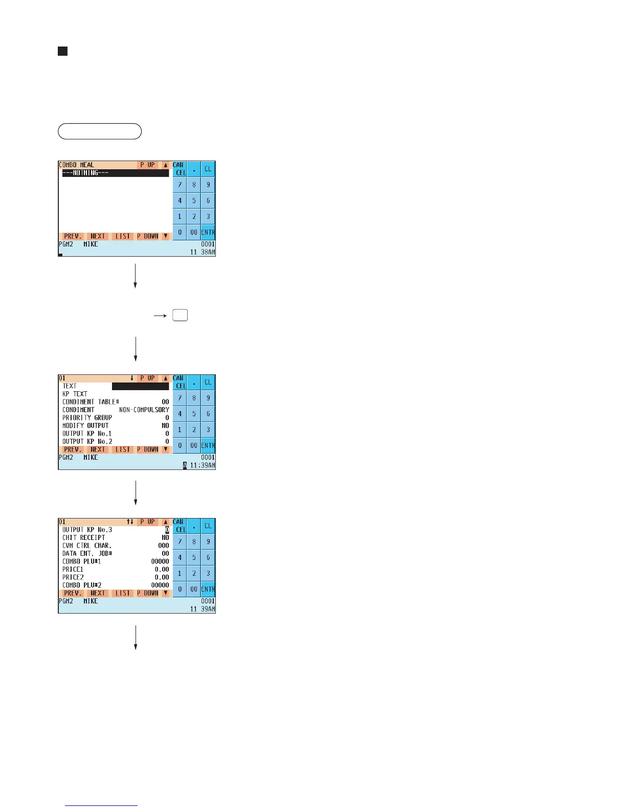 combo meal function should be used. Up to 20 combo keys (tables) can be programmed. Each combo key can be