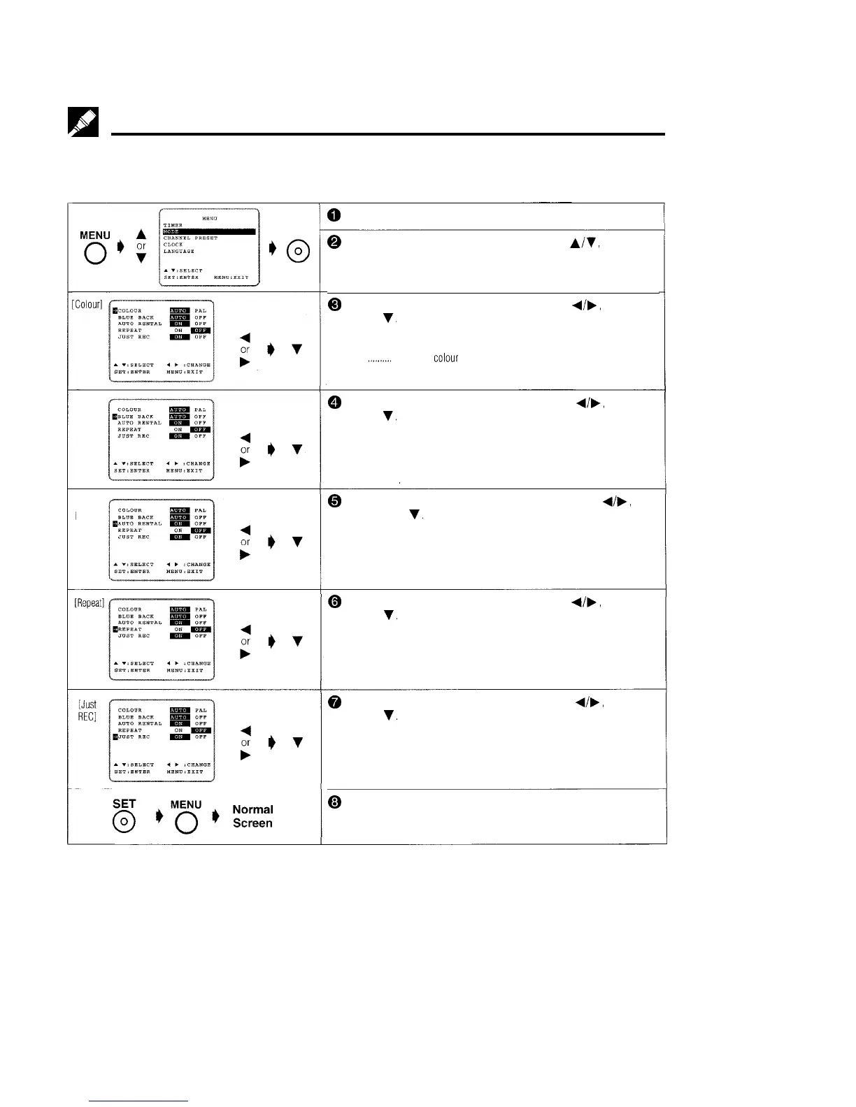 @ Press SET. To return to the normal screen, press MENU.
