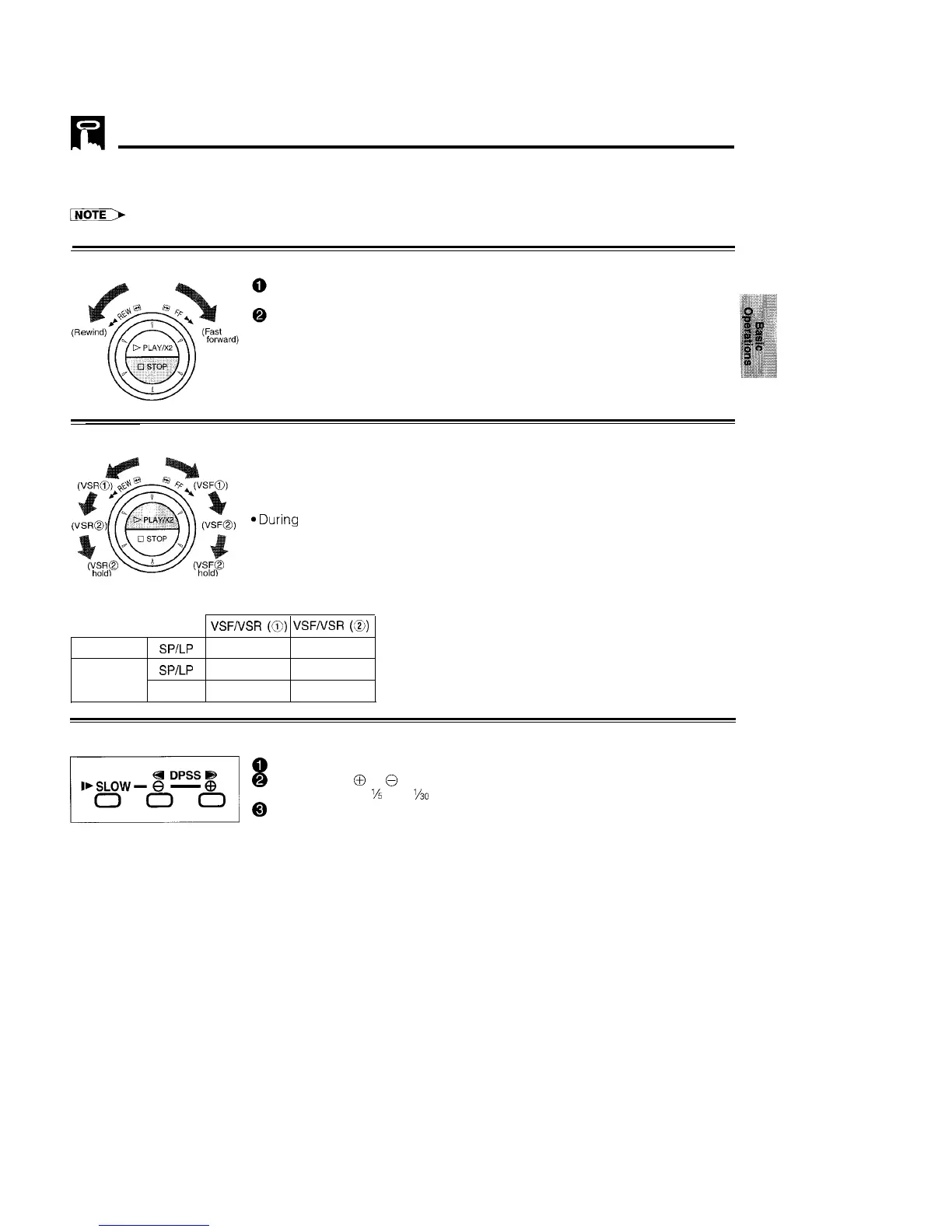 Forward), or VSR (Video Search Reverse) mode. Select from two speeds by