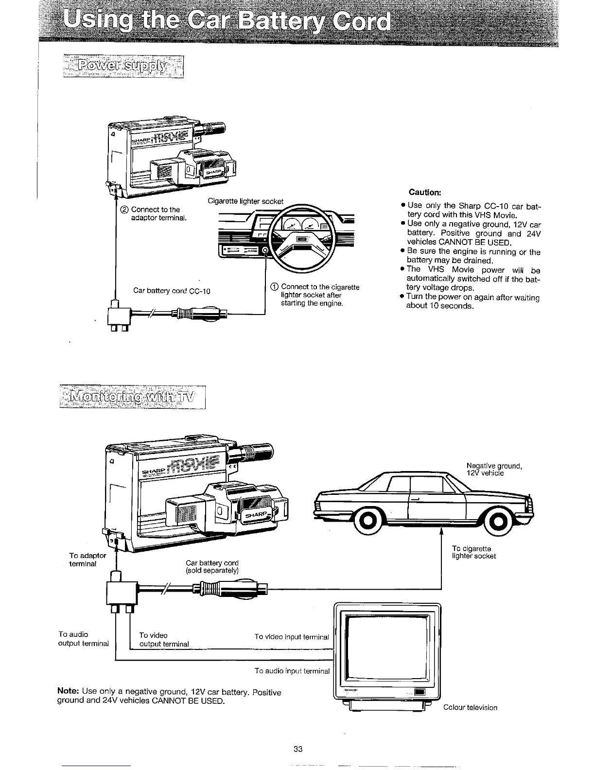 Sharp VC-C10PN - Using the Car Battery Cord