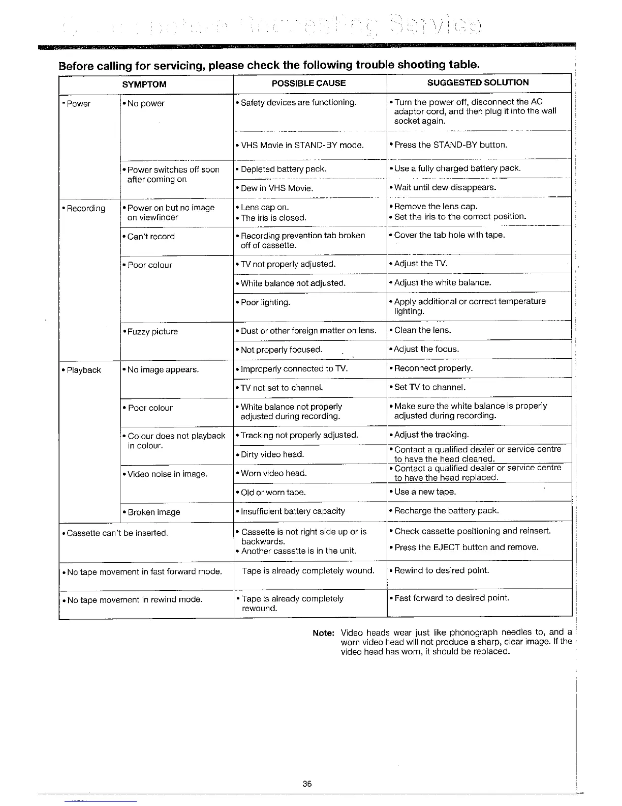 Sharp VC-C10PN - Troubleshooting
