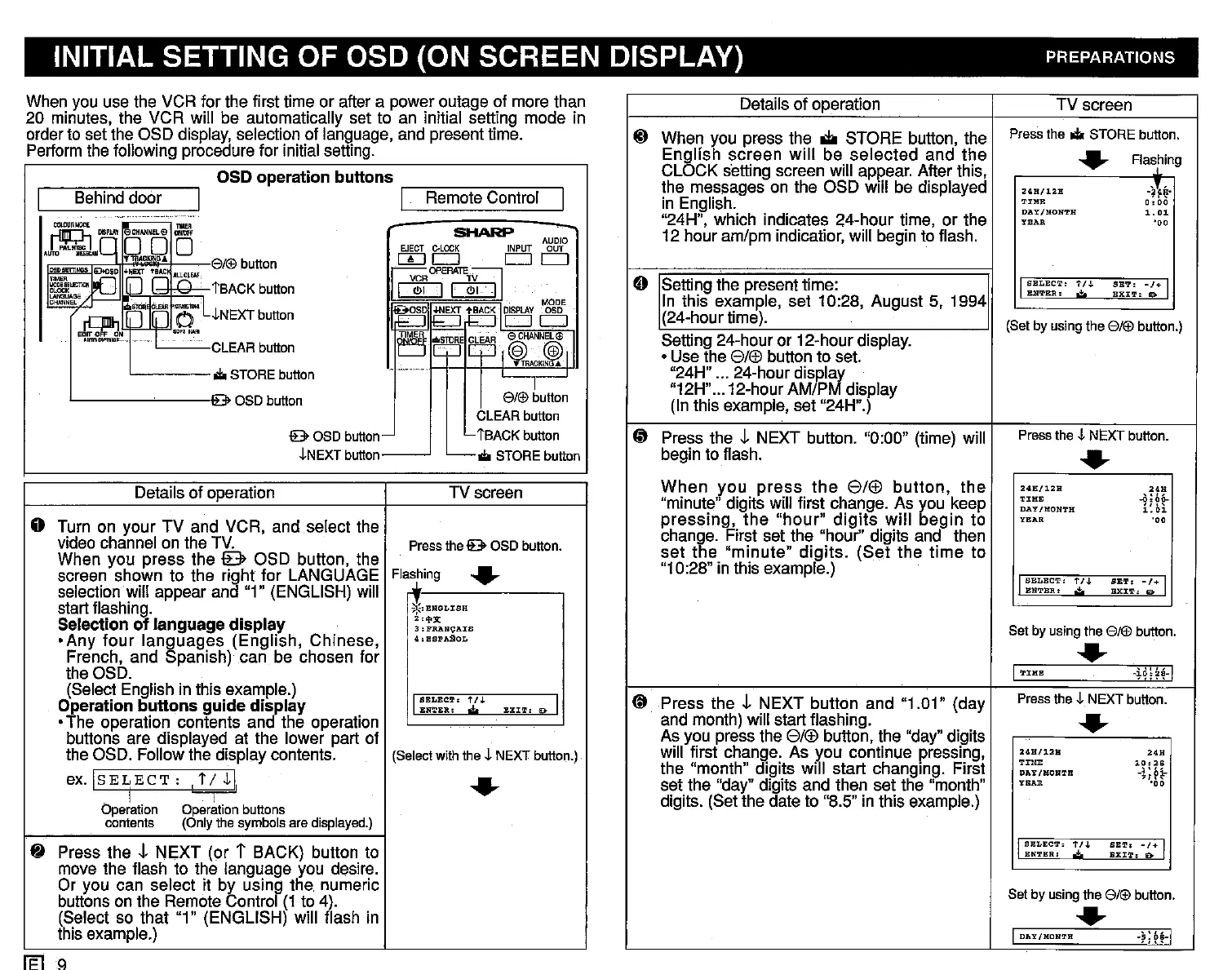 INITIAL SETTING OF OSD (ON SCREEN DISPLAY) PREPARATIONS