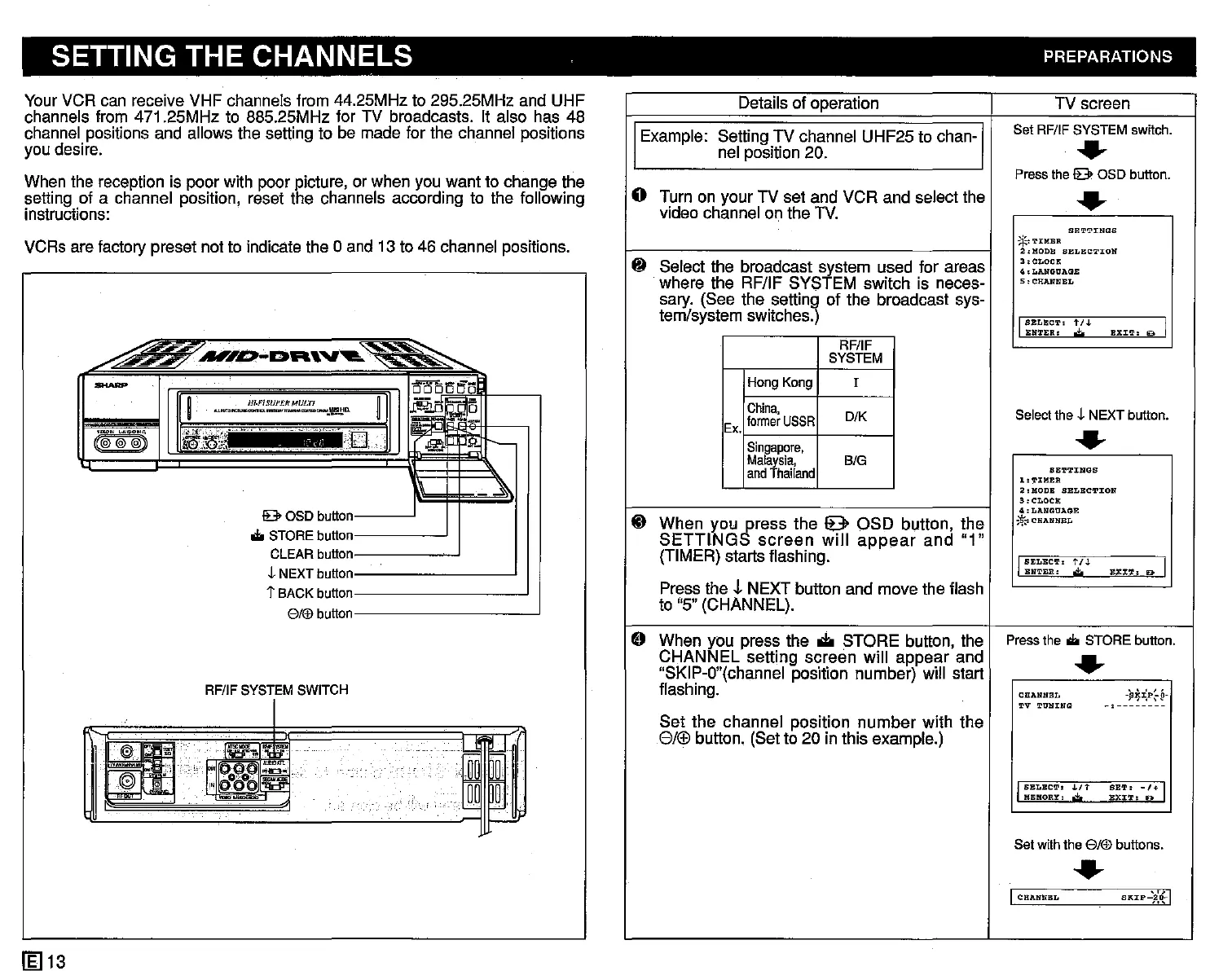 VCRs are factory preset not to indicate the 0 and 13 to 46 channel positions.