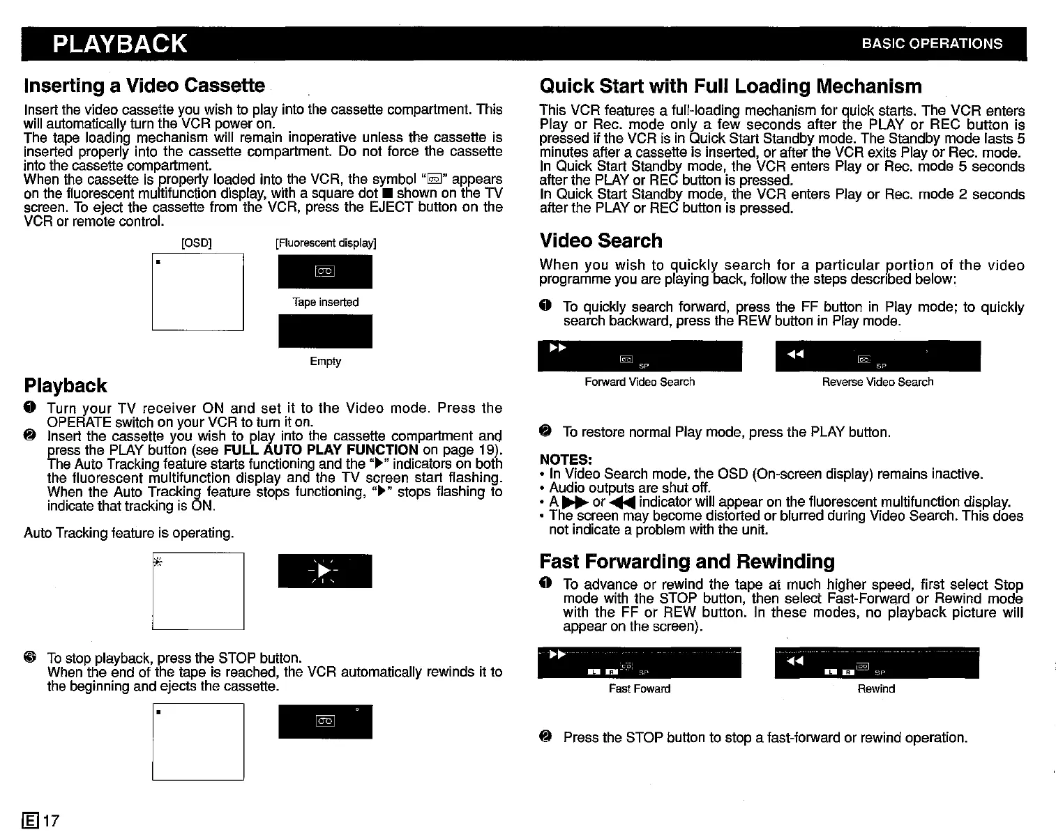 mode with the STOP button, then select Fast-Forward or Rewind mode