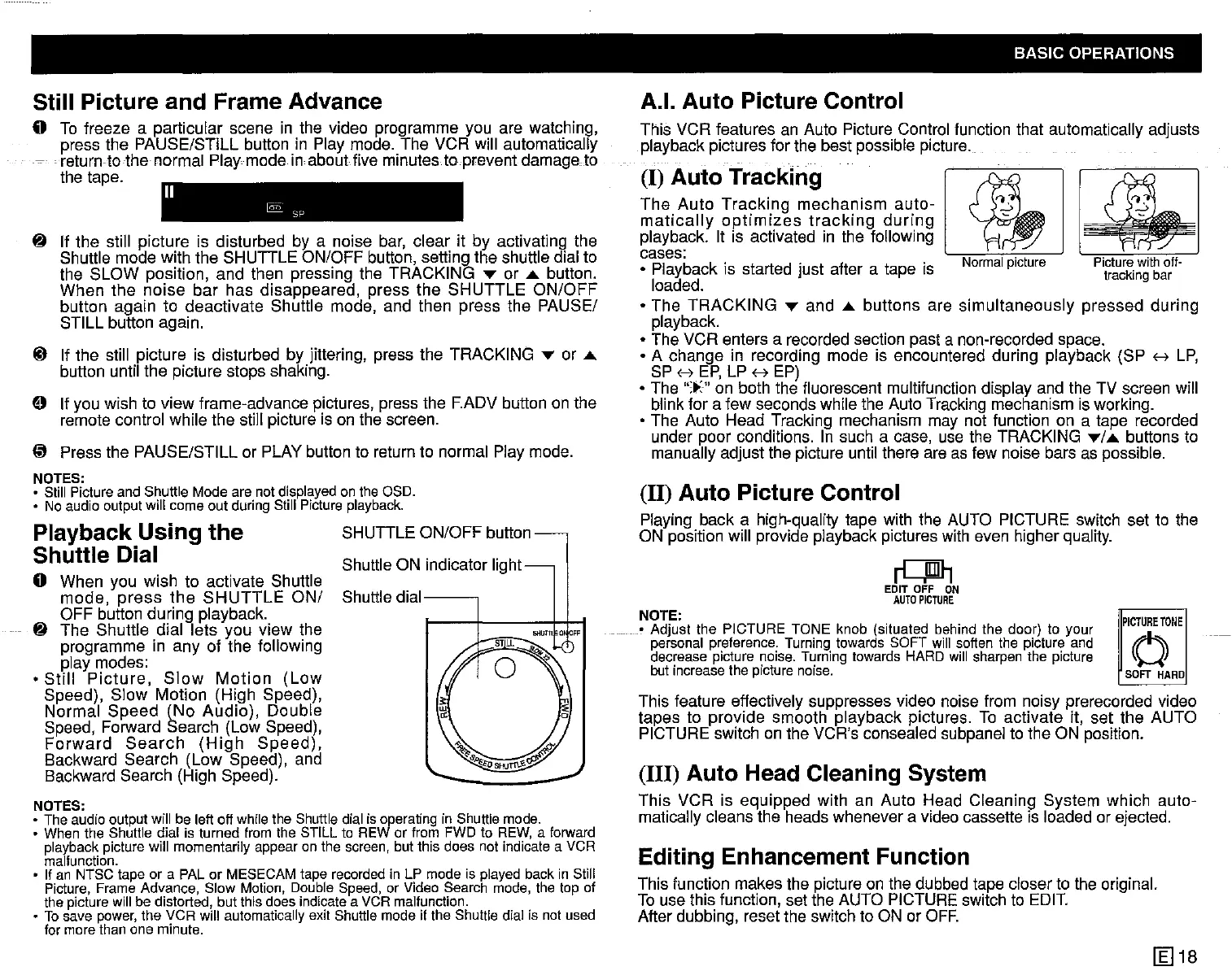 tapes to provide smooth playback pictures. To activate it, set the AUTO