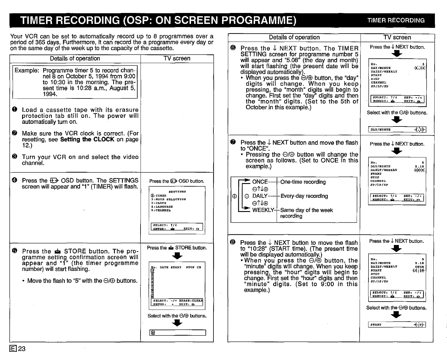 TIMER RECORDING (OSP: ON SCREEN PROGRAMME) TIMER RECORDING