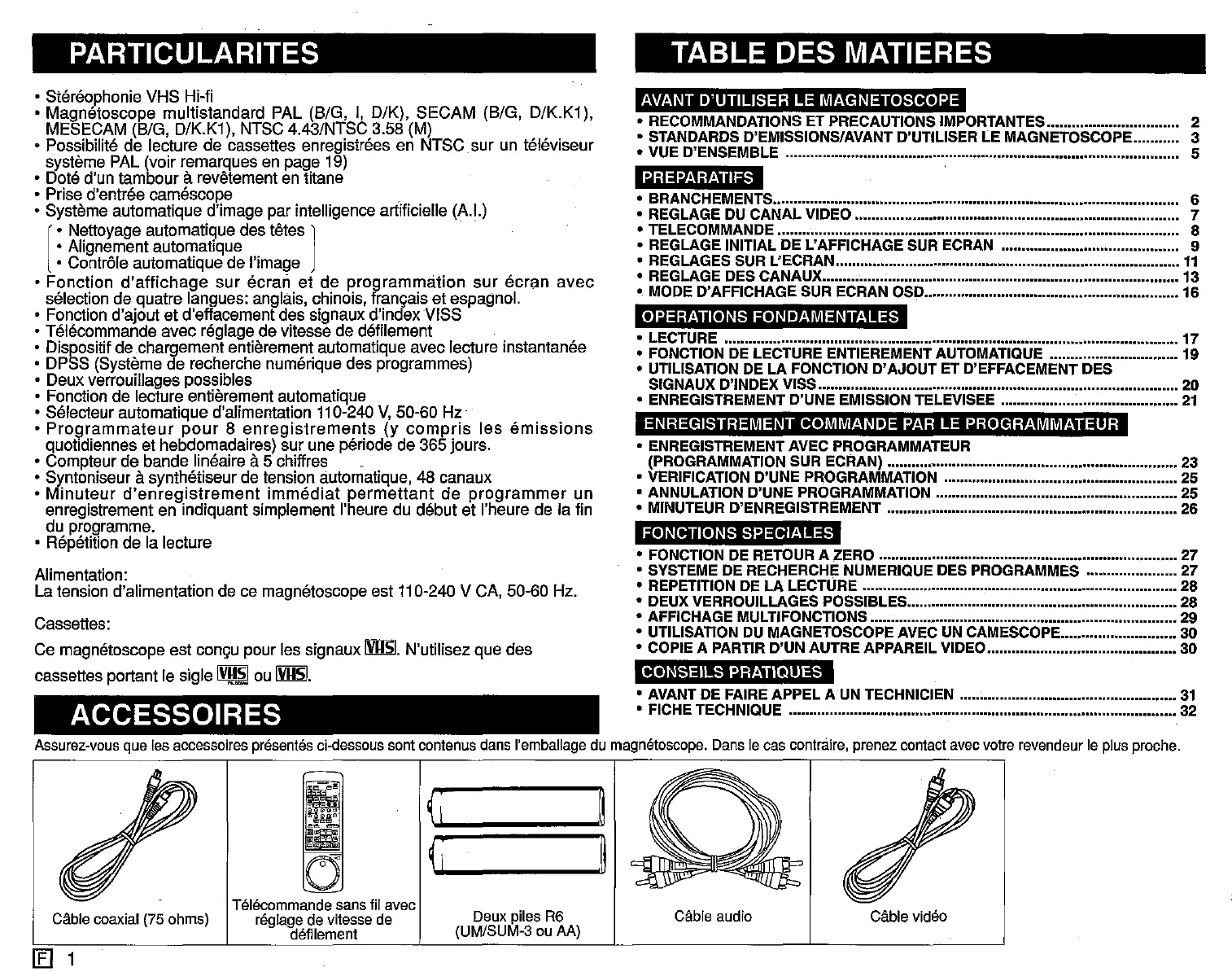 • STANDARDS D'EMISSIONS/AVANT D'UTILISER LE MAGNETOSCOPE........... 3