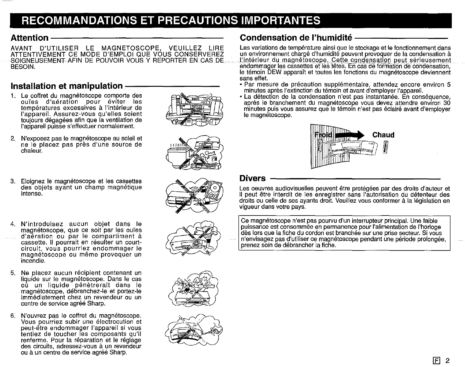 endommager les cassettes et lestetes, En cas de form-alien de condensation,
