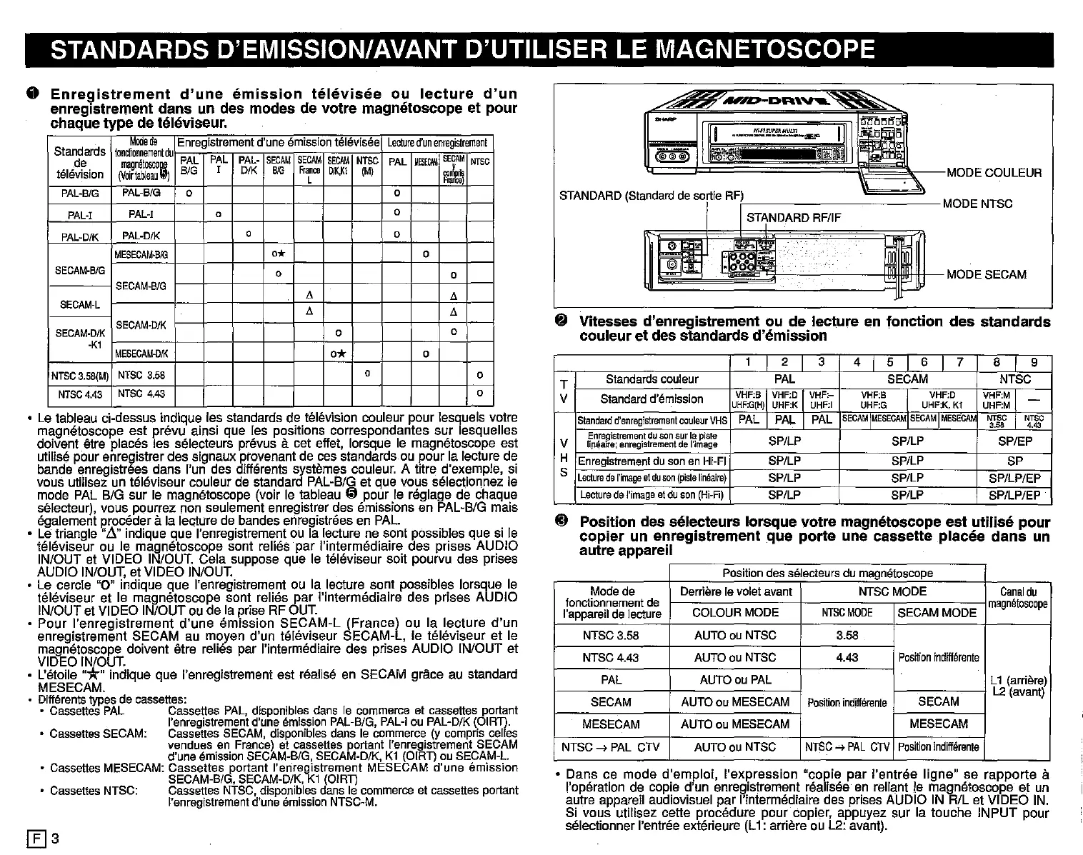 STANDARDS D'EMISSION/AVANT D'UTILlSER LE MAGNETOSCOPE
