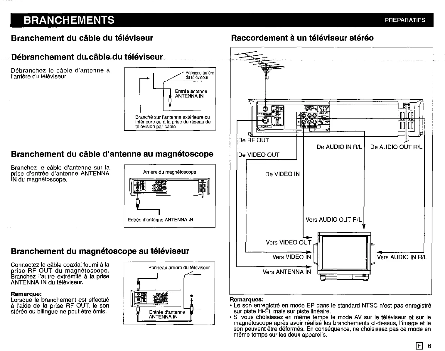 Branchement du cable d'antenne au rnaqnetoscope
