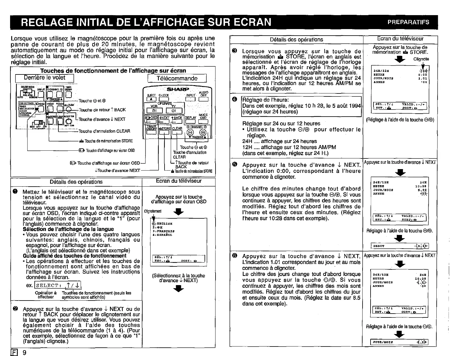 Dans cet exemple, reglez 10 h 28, le 5 aoGt1994