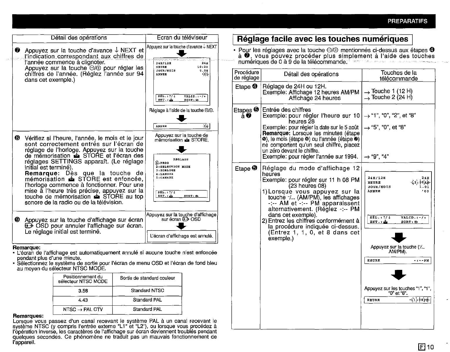 Reglage de 24H ou 12H.