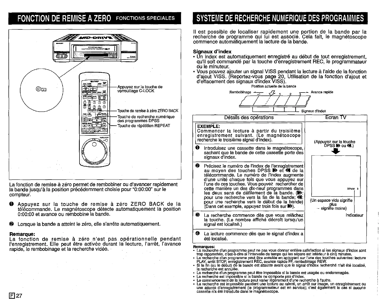 La fonction de remise azero permet de rembobiner ou d'avancer rapidement