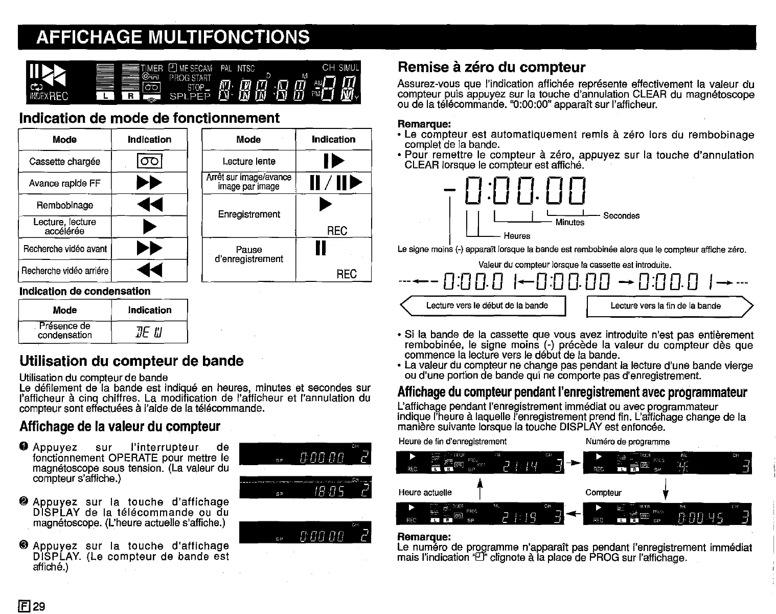 Valeurdu compteur lorsque la cassetteest introduite.