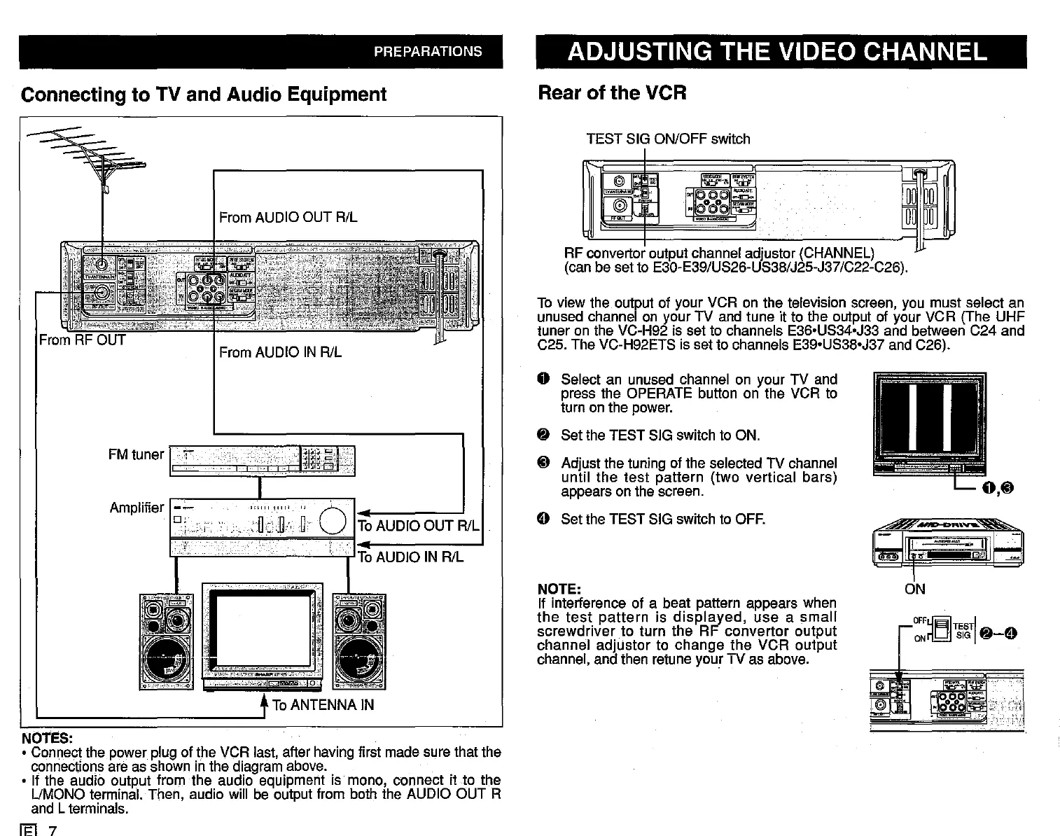 C25. The VC-H92ETS is set to channels E39'US38'J37 and C26).