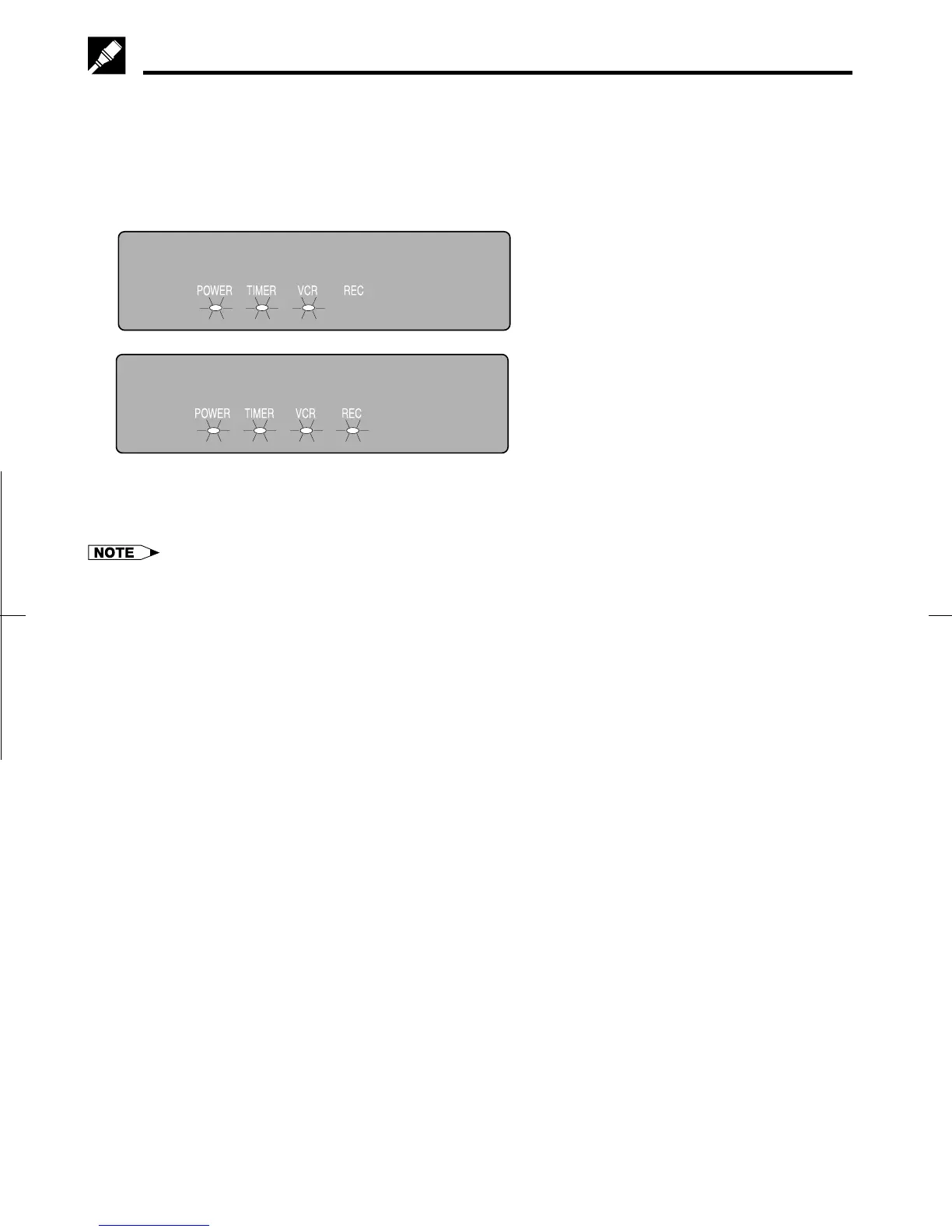 and REC LED indicator (or POWER, TIMER and VCR LED indicator) lights up flashing. (As above)