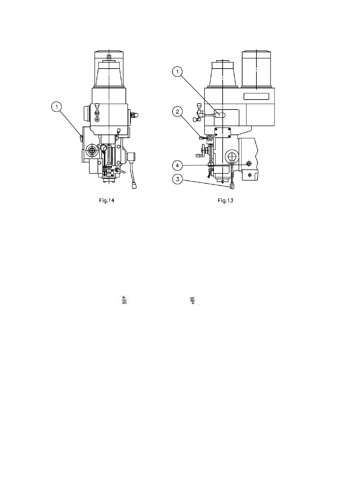 (3) Set the spindle feed direction lever (Fig.13 (2)) either to the up