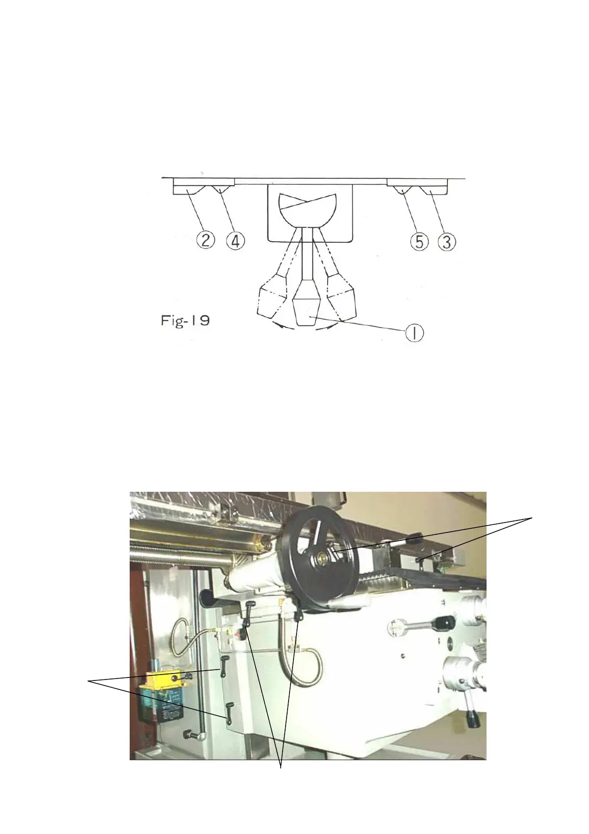 (1) When longitudinal feed is not need, turn two clamp lever (Fig.20 (3))